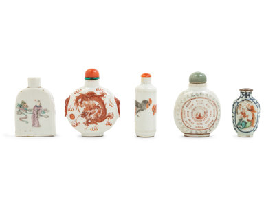 Five Chinese Porcelain Snuff Bottles