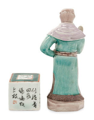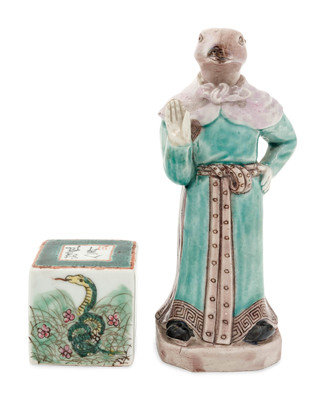 the first a zodiac figure with of mouse, the second a square seal painted with a green enamelled snake and poems.