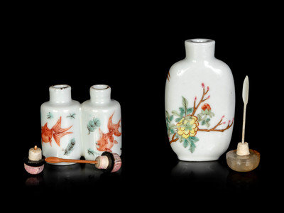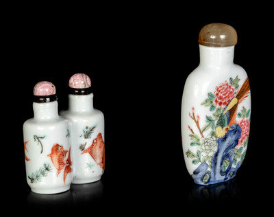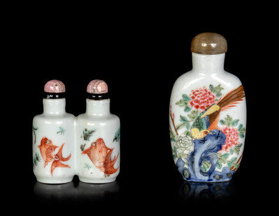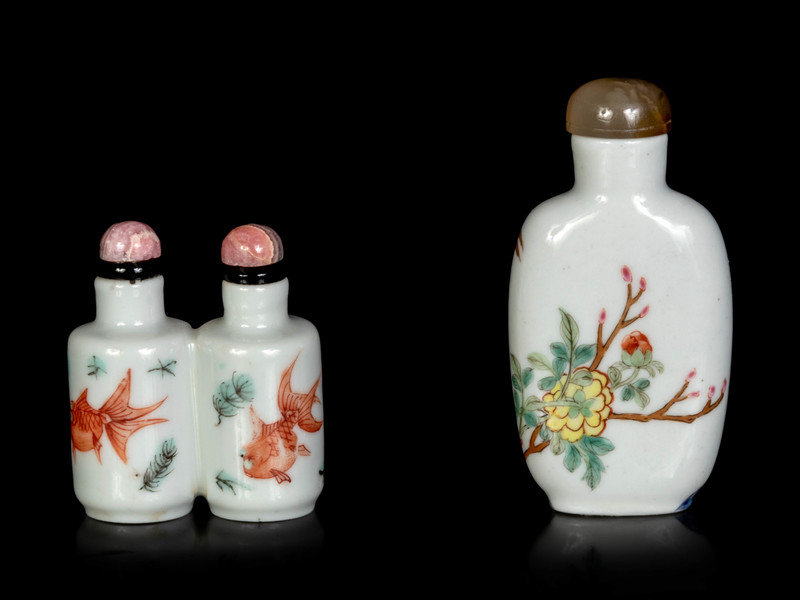 Two Chinese Famille Rose Porcelain Snuff Bottles