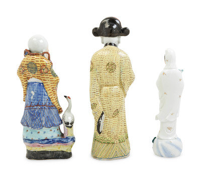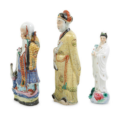 Three Chinese Famille Rose Porcelain Figures of Immortals