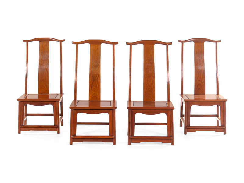 Four Chinese Hardwood Dining Chairs, Dengguayi