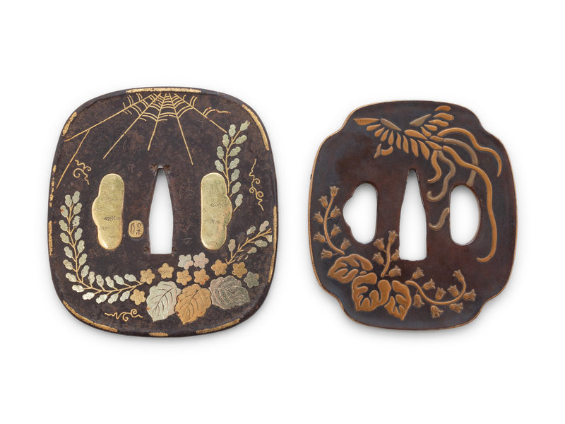 Two Japanese Mixed Metal Inlaid Tsuba