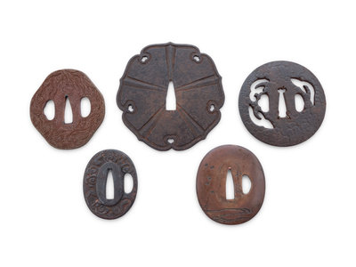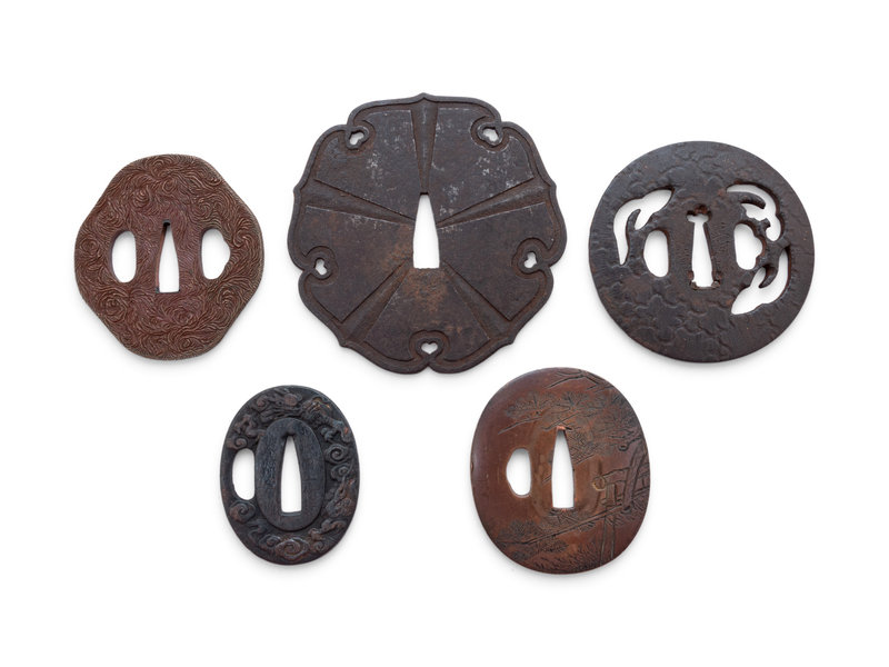comprising one bronze example, signed 千藏; four cast iron examples, two signed.