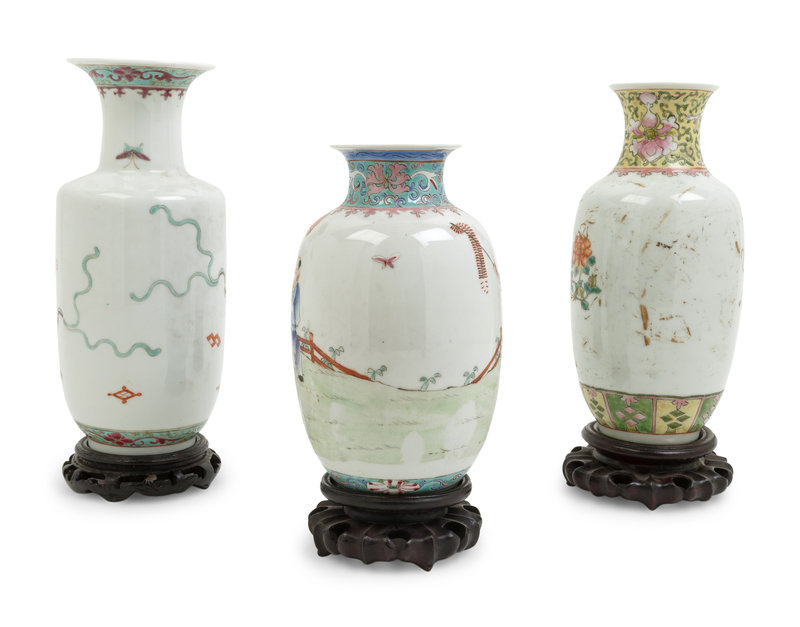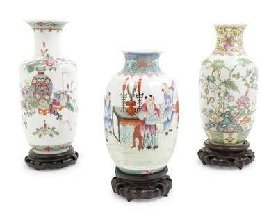 Three Chinese Famille Rose Porcelain Vases