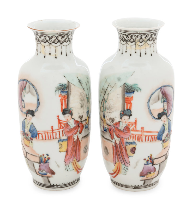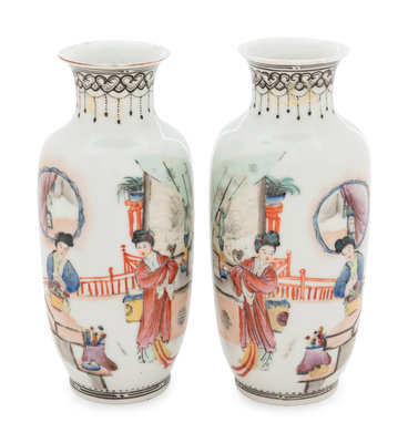 A Pair of Chinese Famille Rose Porcelain Vases
