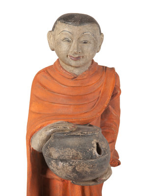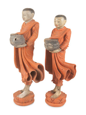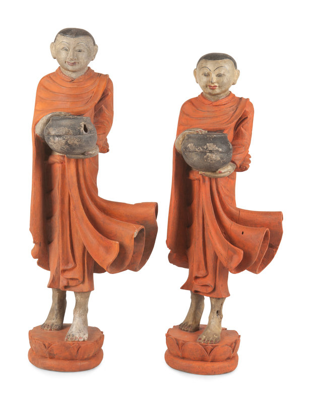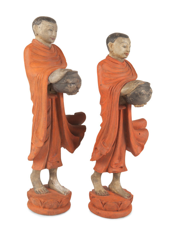 depicting monks, each standing above a lotus plinth grasping a bowl.