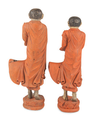 Two Burmese Polychrome Painted Carved Wood Figures