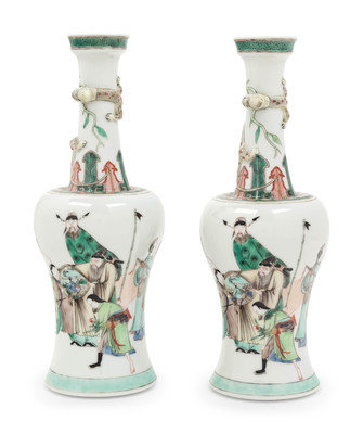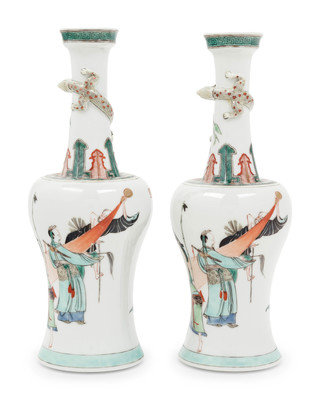A Pair of Chinese Famille Verte Porcelain Yen-Yen Vases