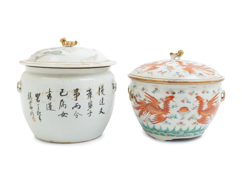 Two Chinese Famille Rose Porcelain Jars and Covers