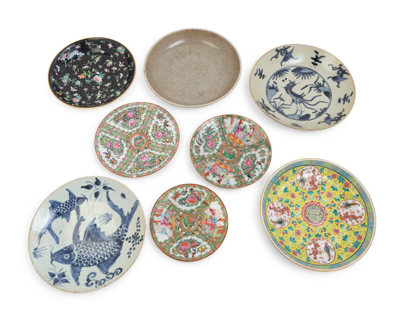 comprising three rose medallion examples, one famille noire example, one famille jaune example, one ge-tye example and two blue and white examples.
