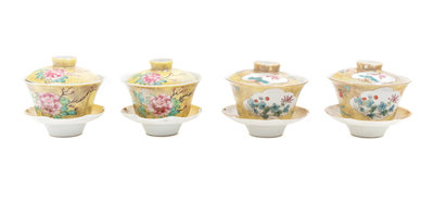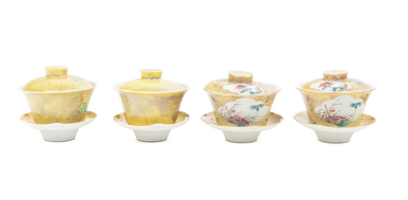 Two Pairs of Chinese Incised Yellow Ground Teabowls