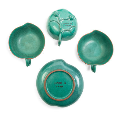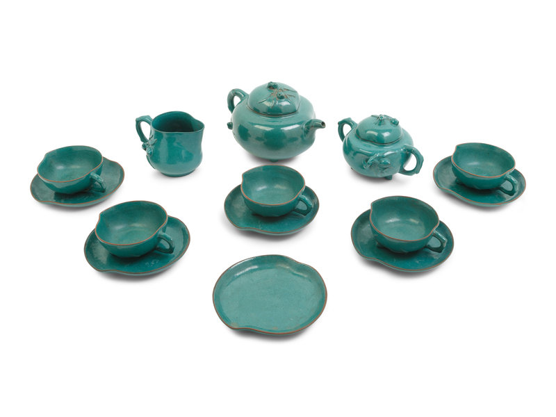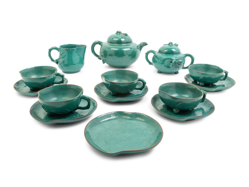 A Chinese Green Glazed Zisha Pottery Tea Set