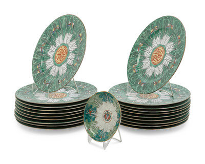 A Partial Set of Chinese Famille Rose 'Cabbage' Porcelain Dinner Service