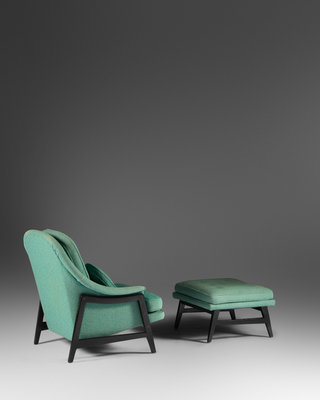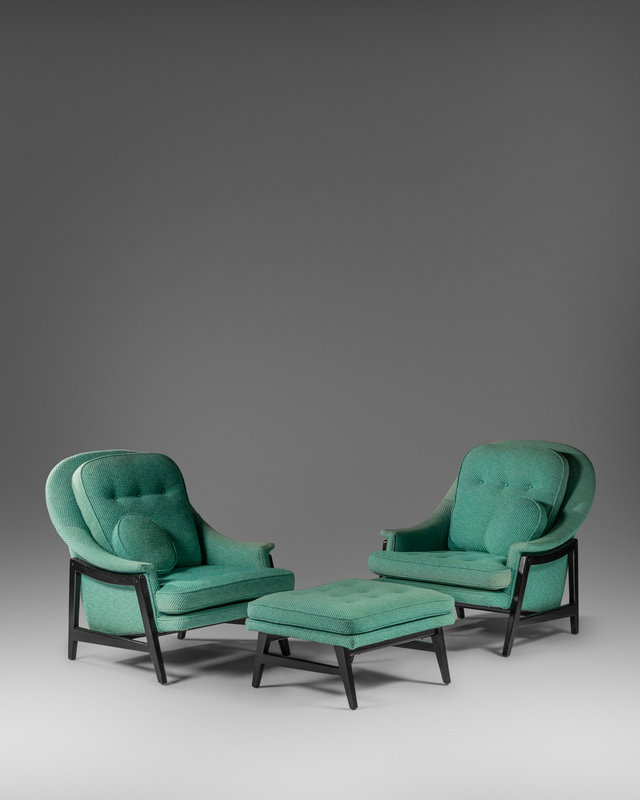 Pair of Lounge Chairs with Ottoman,