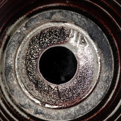 glazed stoneware, linen, brass