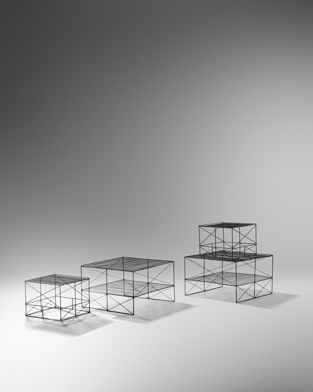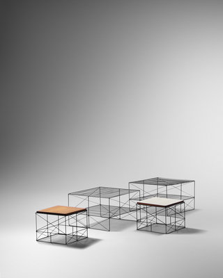 Pair of Large Wire Side Tables and Two Small Wire Side Tables