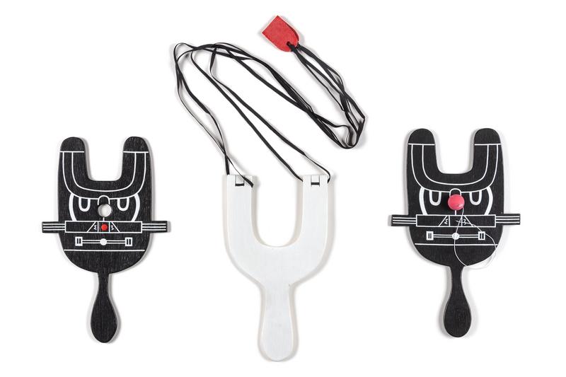 , 1980acrylic on wood with string, felt and rubber ball