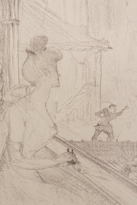 crayon lithograph with scraping on stone, in violet-black on cream wove paper