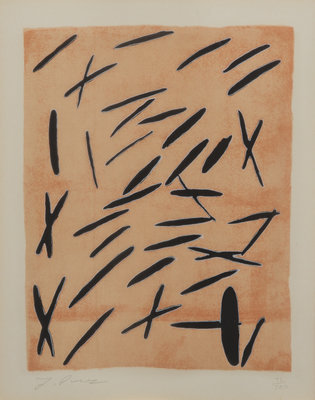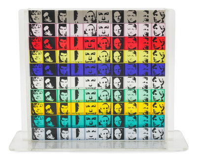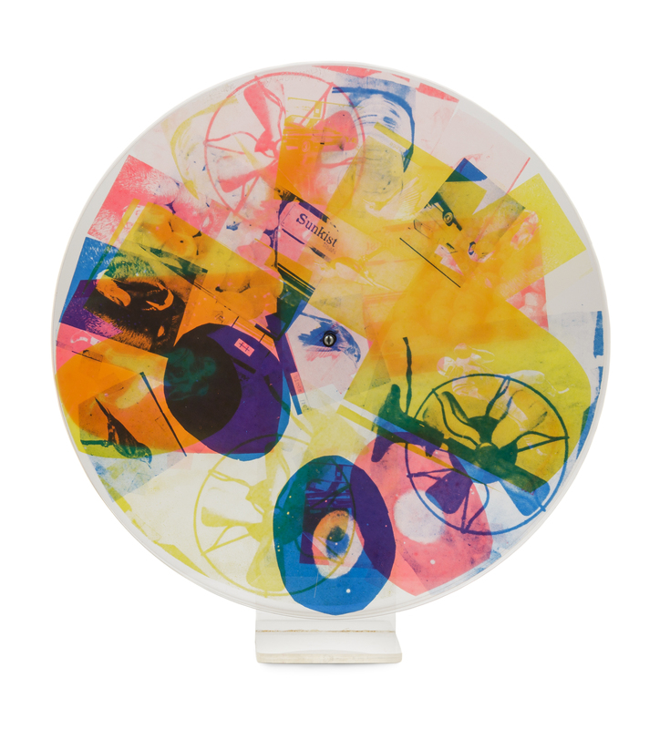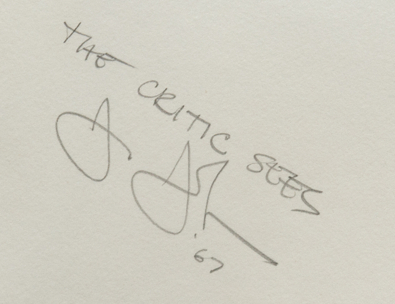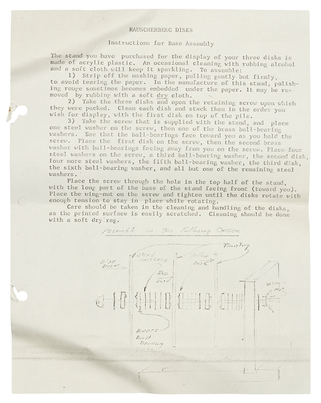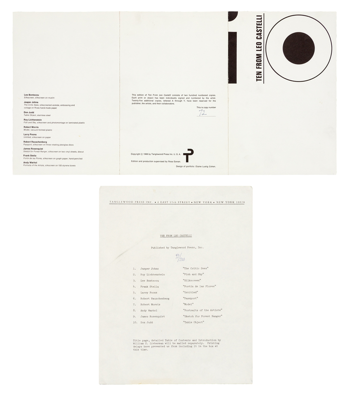 Includes Lee Bontecou Untitled, Jasper Johns The Critic Sees, Donald Judd Untitled, Roy Lichtenstein Fish and Sky, Robert Morris Model, Larry Poons Untitled, Robert Rauschenberg Passport, James Rosenquist Sketch for Forest Ranger, Frank Stella Fortin de las Flores (First Version), Andy Warhol Portraits of the Artists.