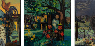 signed Luis Eades and dated (central panel, lower left); signed, titled, and inscribed (each panel)