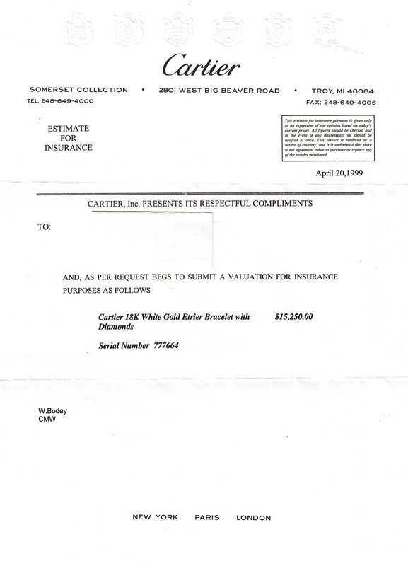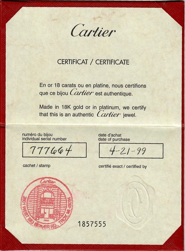 Accompanied by a Cartier certificate, receipt and estimate for insurance document