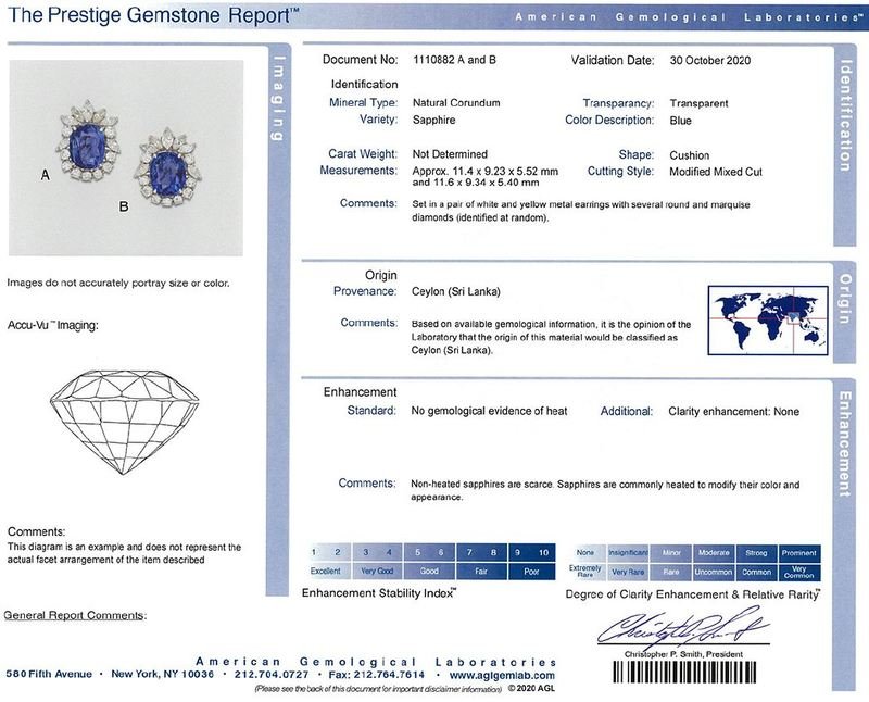 AGL, 2020, Report number 1110882 A and B, Natural Corundum, Sapphire, Ceylon (Sri Lanka), No gemological evidence of heat