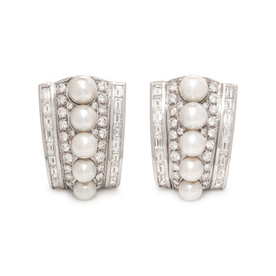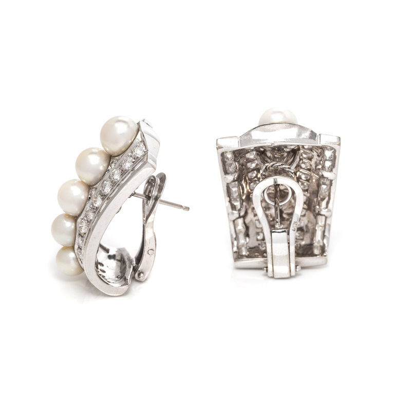 DIAMOND AND CULTURED PEARL EARCLIPS