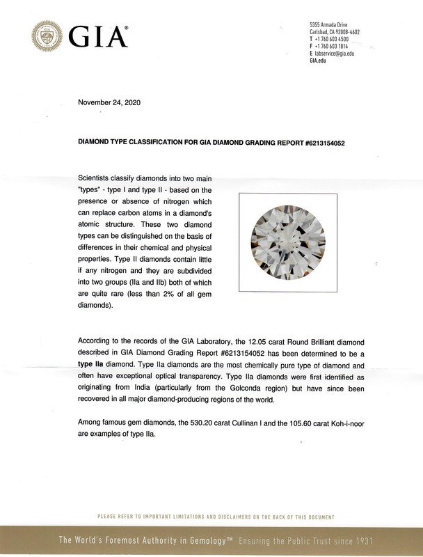 Accompanied by a GIA Diamond Type Classification Report, stating Type IIa.