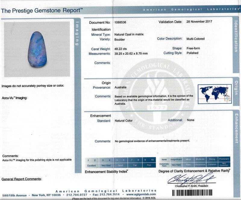 AGL, 2017, Report number 1088536, Natural Opal in matrix, Boulder, Australia, Natural Color