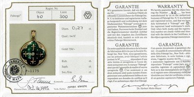 Pendant stamp: FABERGE 40/300 18KT GERMANY 750 (maker's mark).