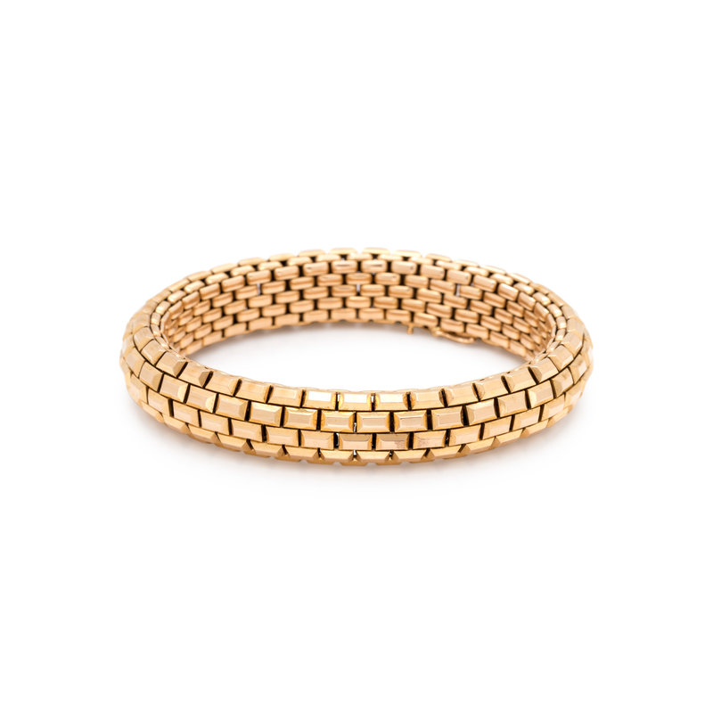 Consisting of a half-domed brick link bracelet measuring approximately 13.20 mm wide. 7 1/2 inches long.