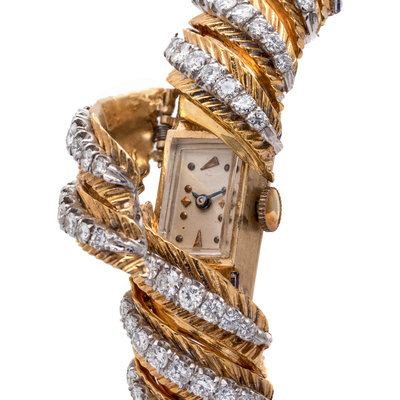 18K YELLOW GOLD AND DIAMOND SURPRISE WATCH