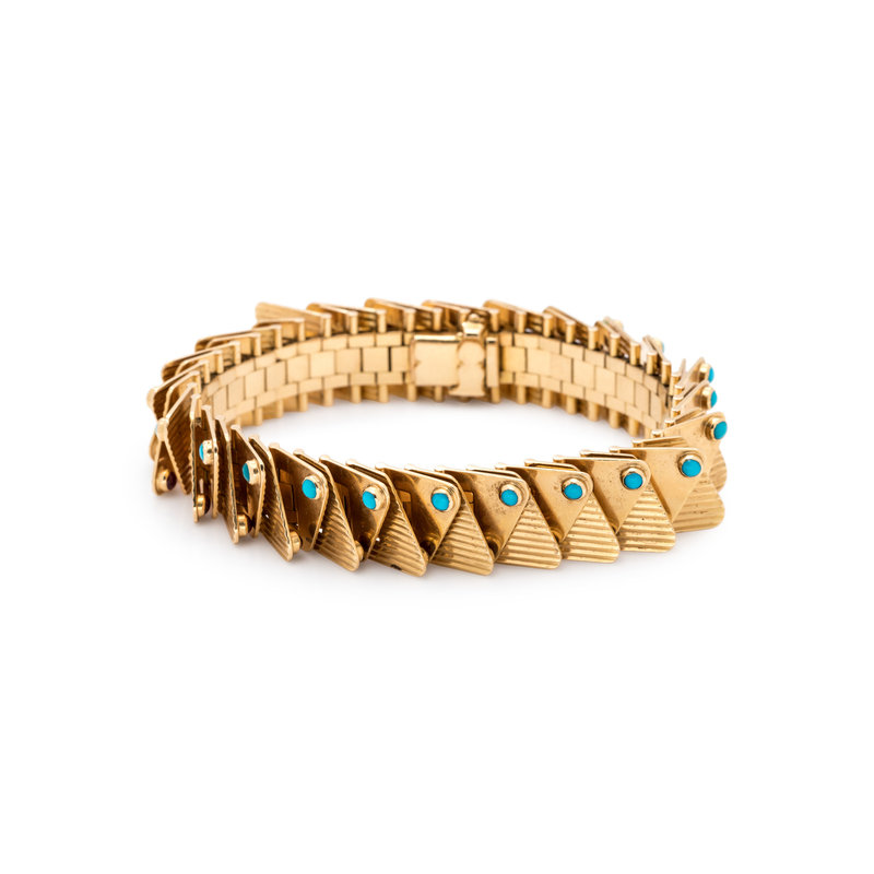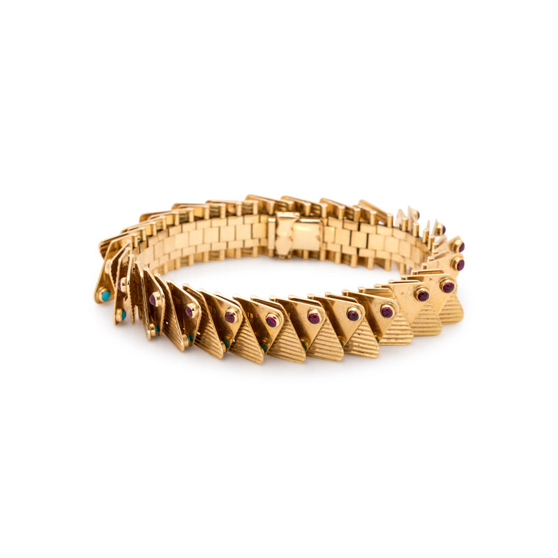 FRENCH, YELLOW GOLD, TURQUOISE AND RUBY BRACELET