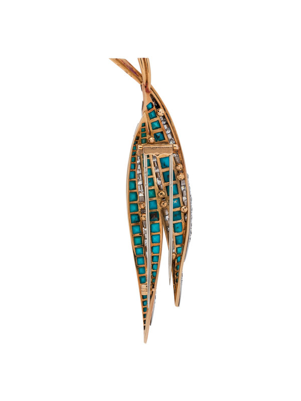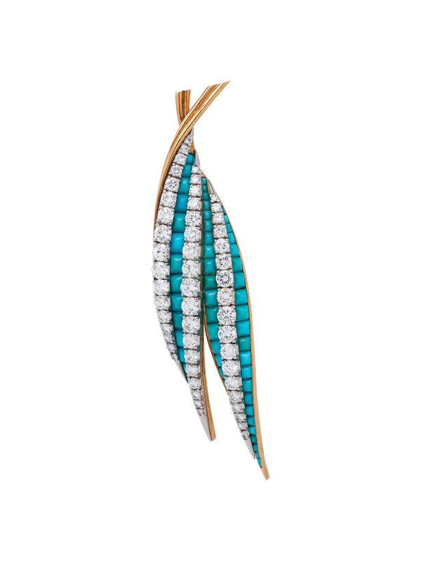 VAN CLEEF & ARPELS, DIAMOND AND TURQUOISE BROOCH