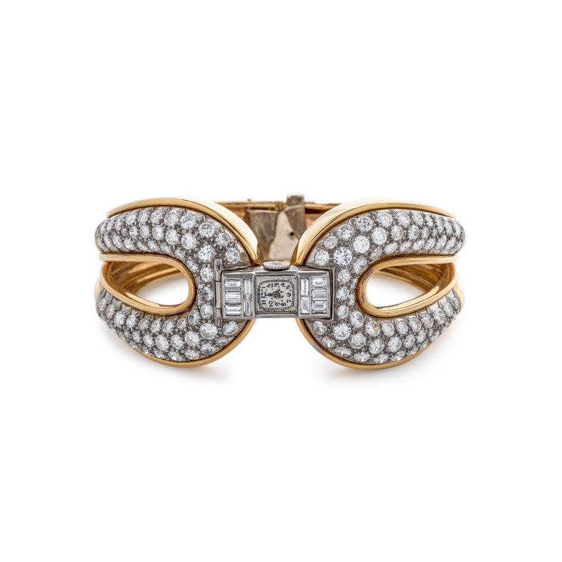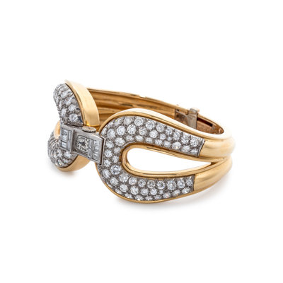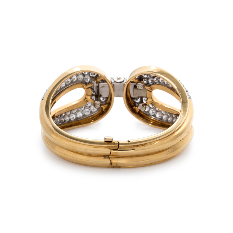 YELLOW GOLD, PLATINUM AND DIAMOND WATCH BANGLE BRACELET
