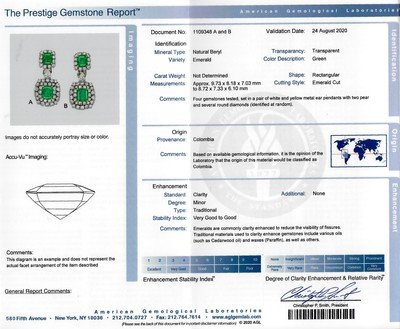 AGL, 2020, Report number 1109348 A and B, Natural Beryl, Emerald, Colombia, Minor-Traditional Clarity Enhancement