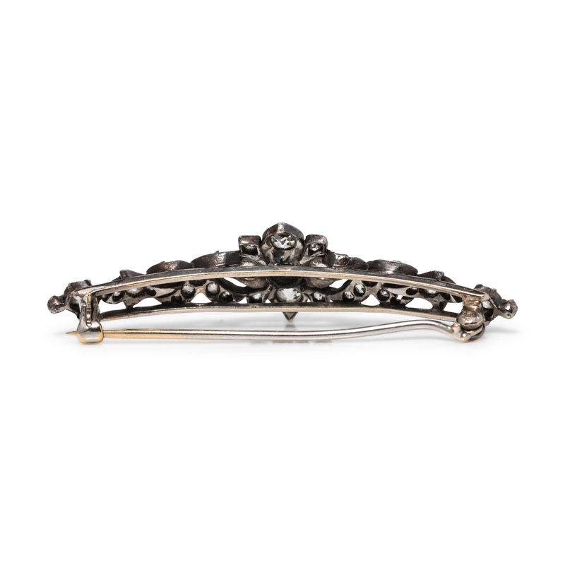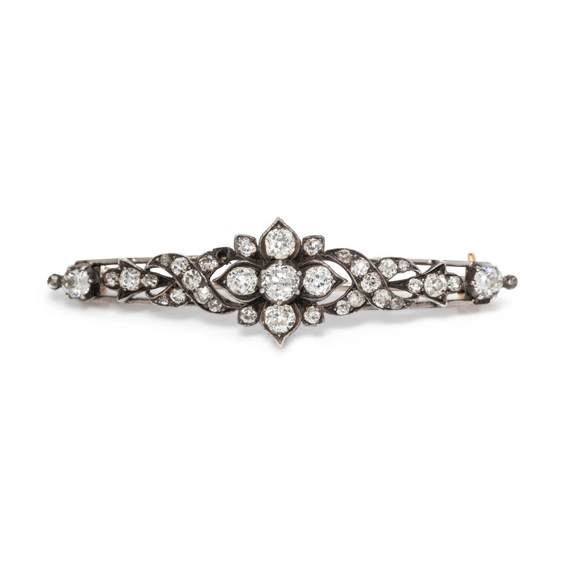 Containing 36 old mine and mixed cut diamonds weighing approximately 1.60 carats total. Mounted in silver. 2 1/8 inches long.
