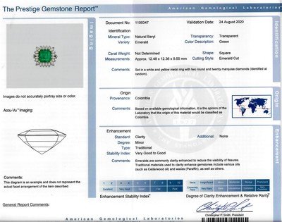 AGL, 2020, Report number 1109347, Natural Beryl, Emerald, Colombia, Minor-Traditional Clarity Enhancement