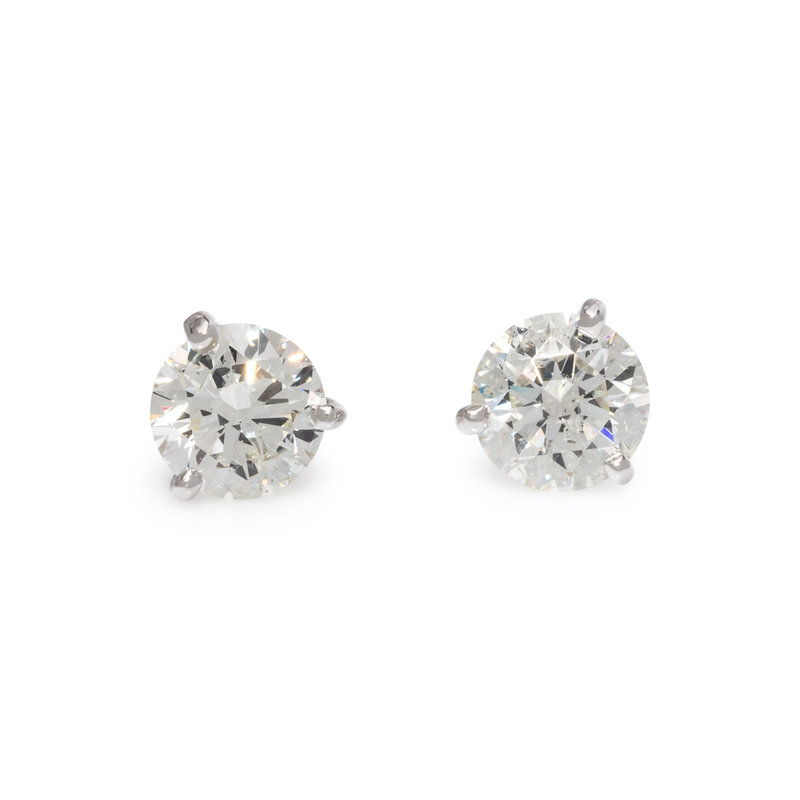 Containing two round brilliant cut diamonds weighing approximately 2.50 carats total. Mounted in white gold.