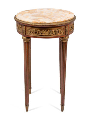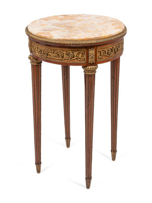 A Louis XVI Style Gilt-Bronze Mounted Mahogany Onyx-Top Side Table