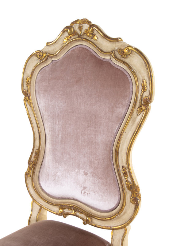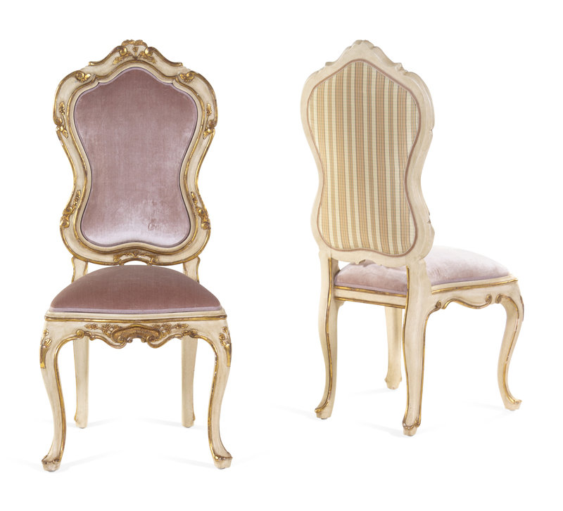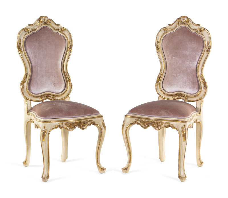 A Pair of Venetian Rococo Style Painted and Parcel Gilt Side Chairs