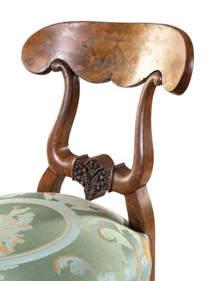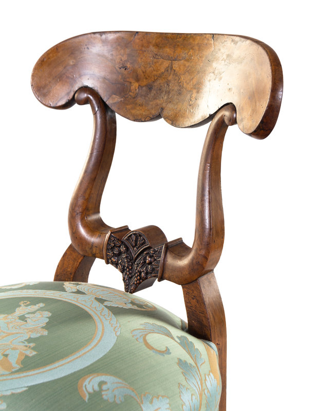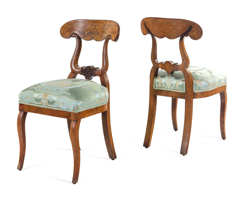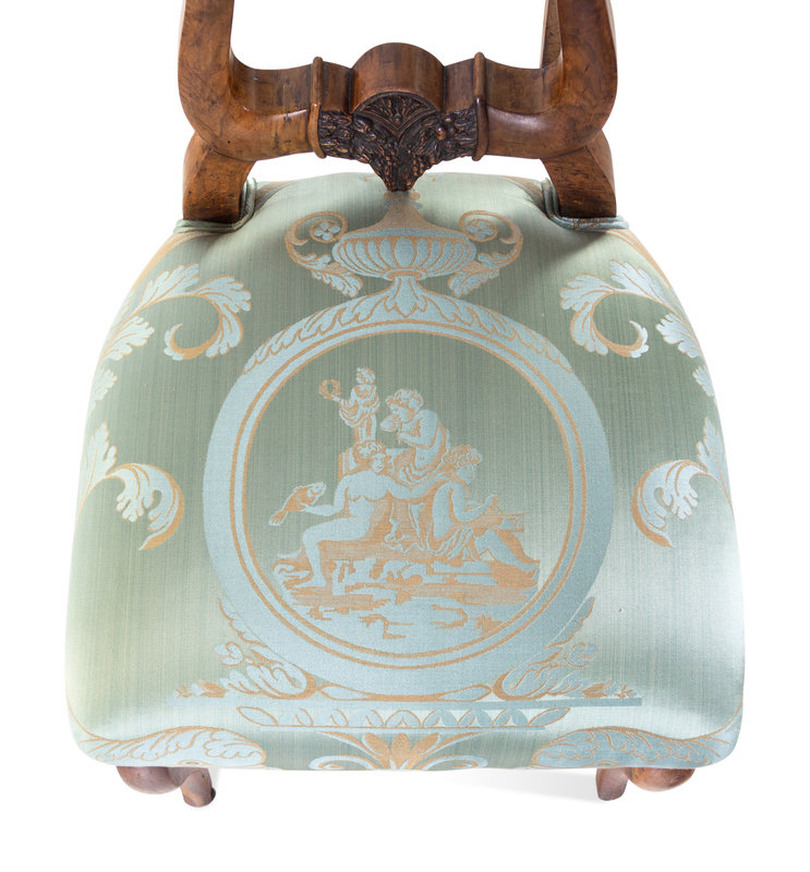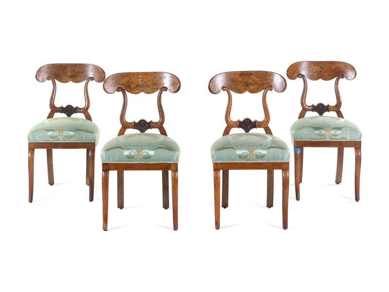 A Set of Four Biedermeier Foliate Carved Burl Walnut Side Chairs