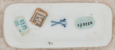 with crossed swords in underglaze blue to the underside.
