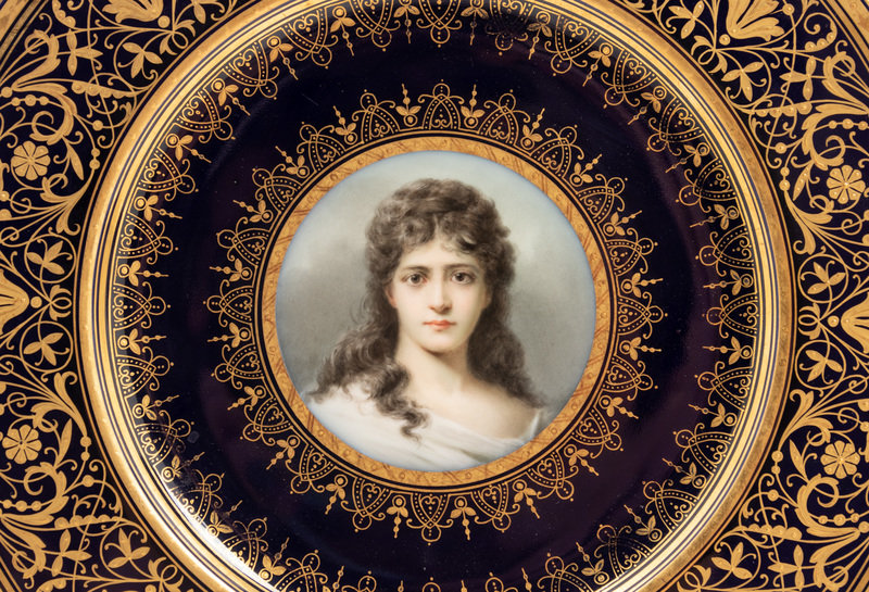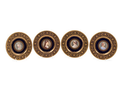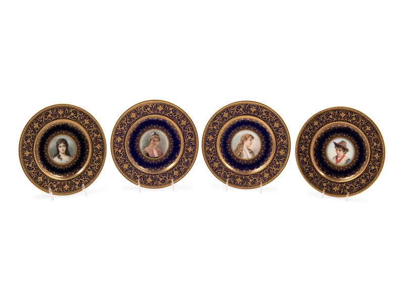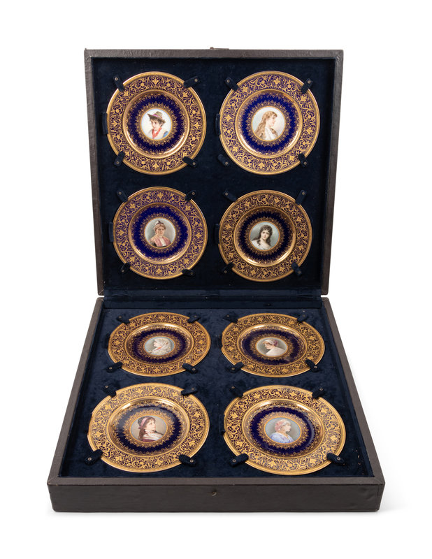 A Cased Set of Eight Vienna Style (Fischer & Mieg) Porcelain Portrait Plates