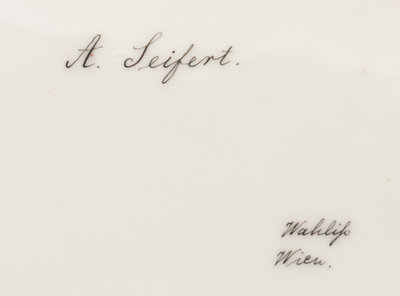 each impressed with F&M or F&M2 and signed Wahliss, Wien to the underside and painted after Knochl, Kaulbach, Bonifazi, Defregger, Zenisek, Schmeichen, or Seifert, the artist named on the underside.