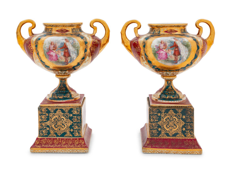 A Pair of Vienna Style Transfer-Printed Porcelain Vases
