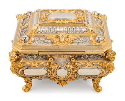 A German Gilt and Silvered Bronze Jewelry Casket