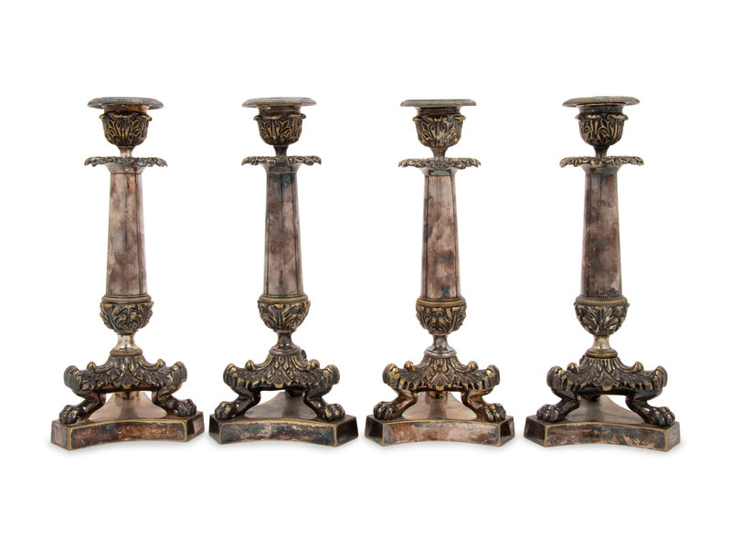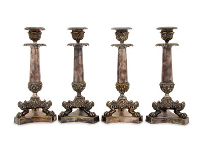 A Set of Four Neoclassical Silvered Bronze Candlesticks