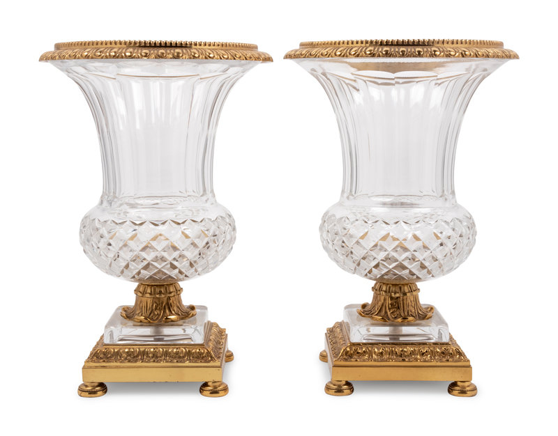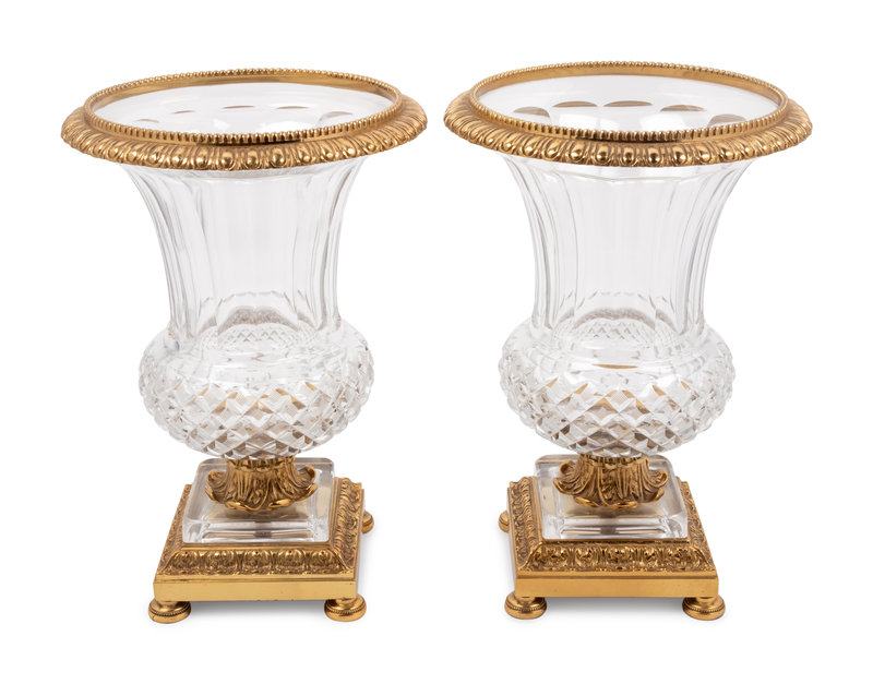 A Pair of Continental Gilt Bronze Mounted Cut Glass Vases