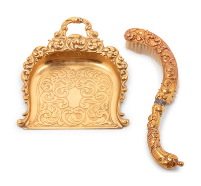 A Pair of Continental Gilt Metal Tazze together with a Dust Pan and Brush
